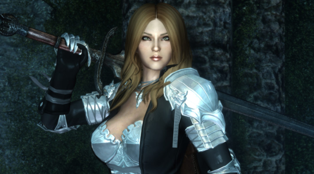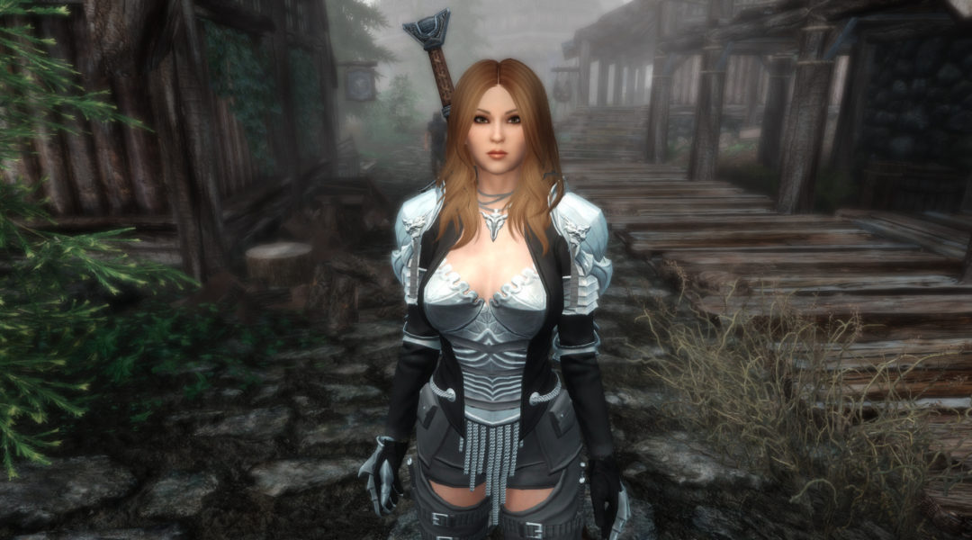 This is Larissa, a new follower from me. She can be married or be your house’s steward on Hearthfire DLC. Uses vanilla voiceset FemaleEvenToned. She heals you (and followers, if you have them) in combat when health gets lower than 75%.