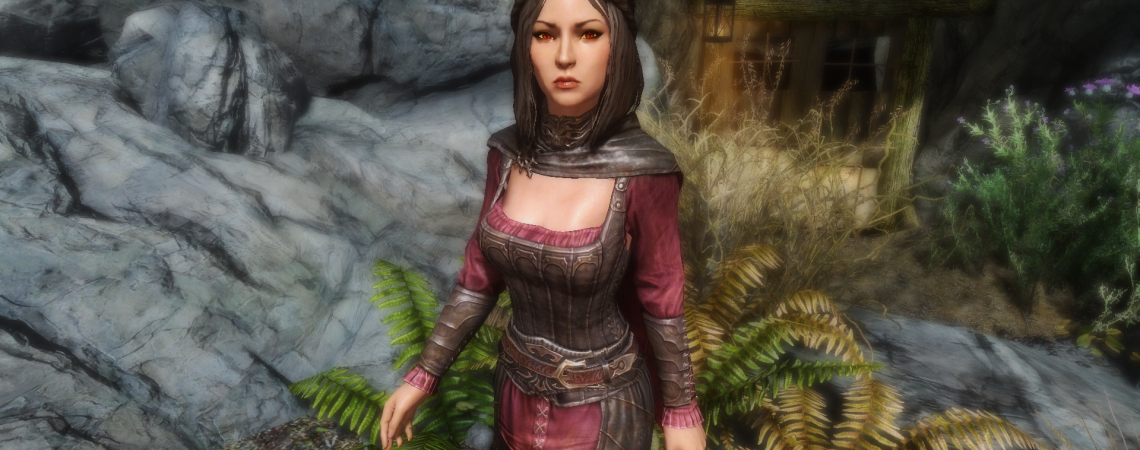 If her eyes in the pictures look different than yours, it’s because I using a mod (which I can’t seem to find what it is) but she will use the normal Dawnguard DLC vampires’ eyes.